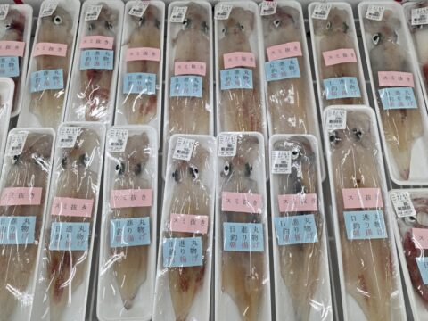 糸島で水揚げされた新鮮な魚介類をどっさり揃えています。色々な漁法で獲れたお魚は種類も豊富。漁協直営だからこそできる価格と品質です。鮮魚は、最高3枚おろしまで無料で調理致します。