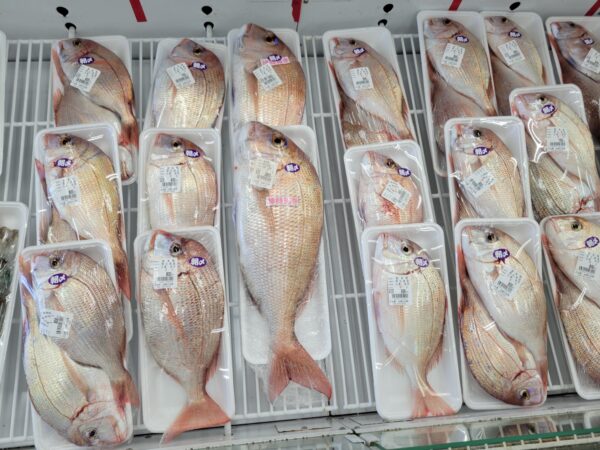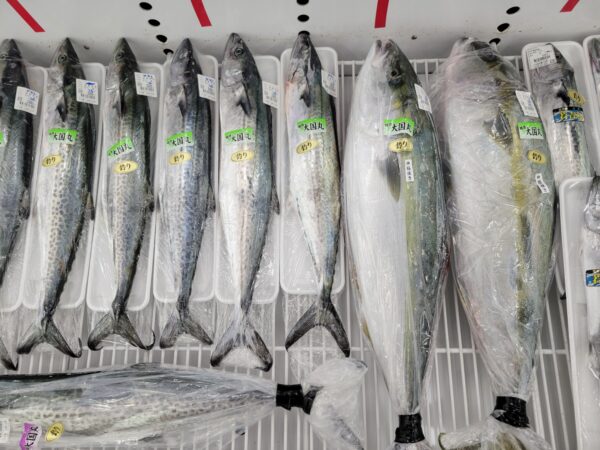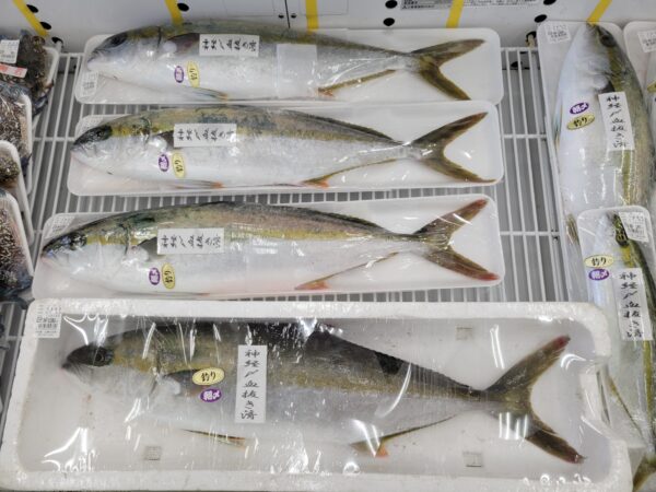 【鮮魚】真鯛、ヒラス、サワラ、ヤズ、コシナガマグロ、タチウオ、青アジ、コノシロ、ハモ、サザエ、カキ等