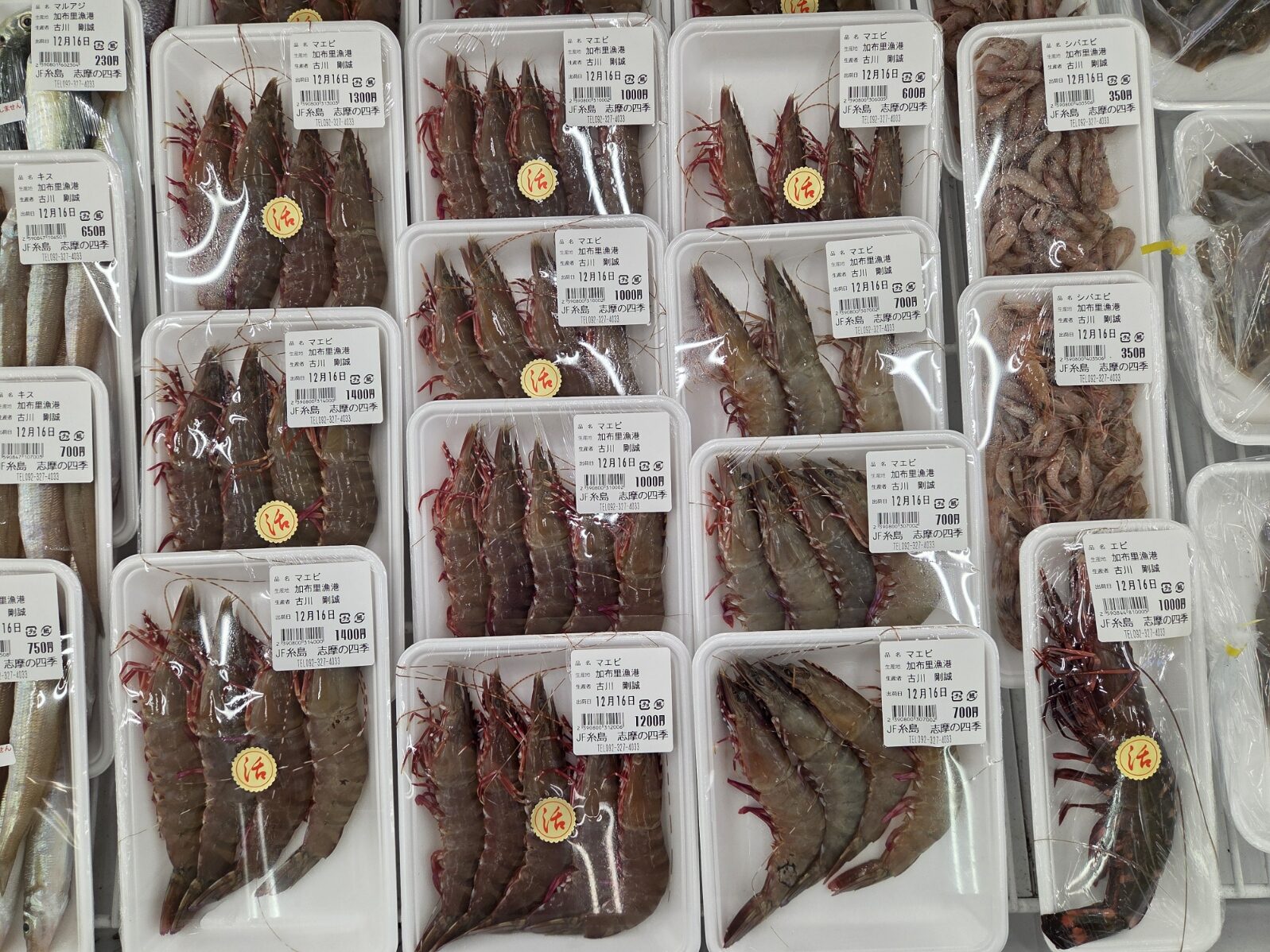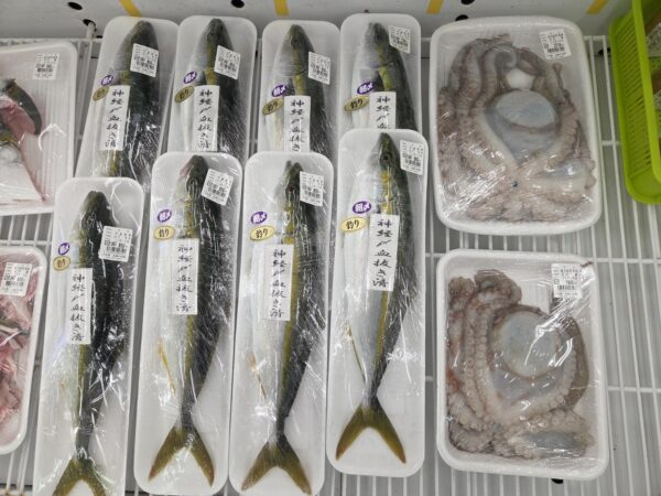 【鮮魚】真鯛、へ鯛、スズキ、ブリ、サワラ、タコ、エソ、マエビ、芝エビ、カキ等