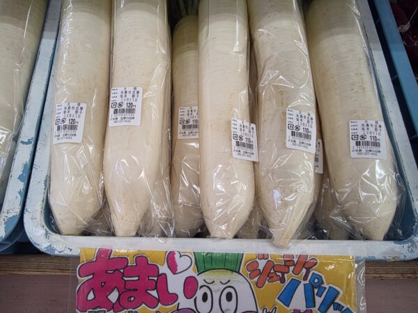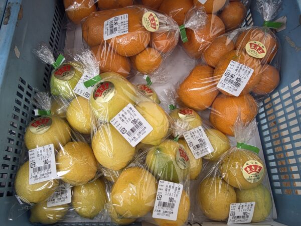 菜花・かつお菜・白菜・大根・きゅうり・ほうれん草・里芋・小松菜・水菜・チンゲン菜・根深ねぎ・早生キャベツ・みかん(紅・早生)・レモン・イチゴ等が入荷中です。