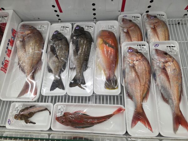 【鮮魚】真鯛、石鯛、ブリ、ヒラス、サワラ、ヒラメ、チヌ、タチウオ、ハト鯛、カキ等