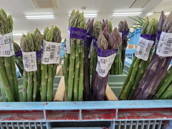 キャベツ・菜花・タケノコ・グリーンピース・ナス・アスパラガス・きゅうり・トマト・デコポン・はるか・天草・八朔・イチゴ等が入荷しております。