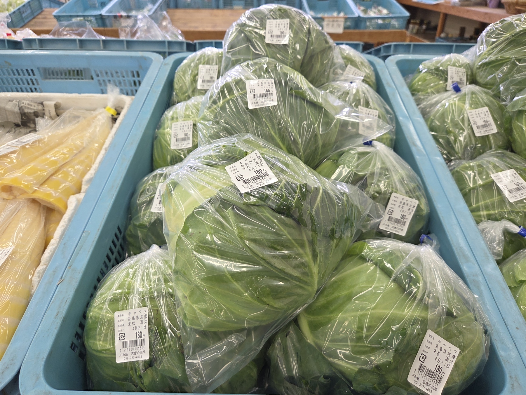 キャベツ、きゅうり、茹でたけのこ、グリーンピース、小松菜、ルッコラ、トマト、甘夏柑、あまおう等