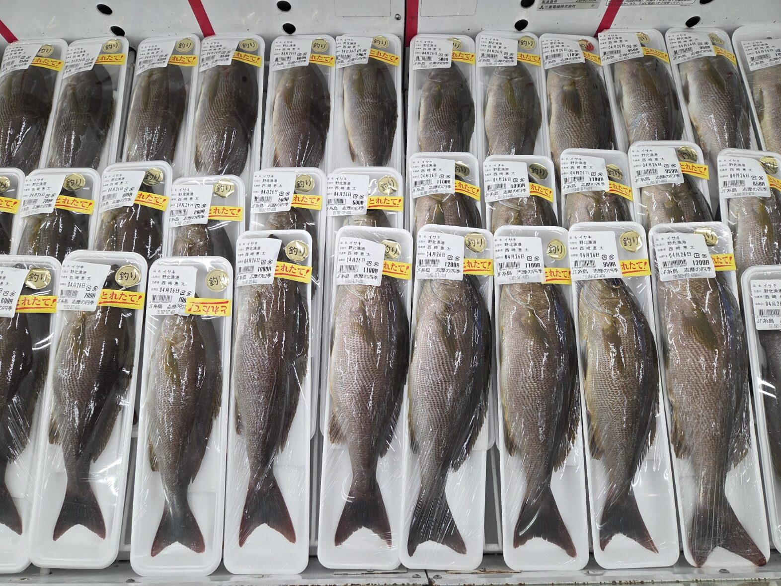 今日はイサキがたくさん入荷しております。刺身、塩焼きで美味しく召し上がれます。是非ご賞味ください。