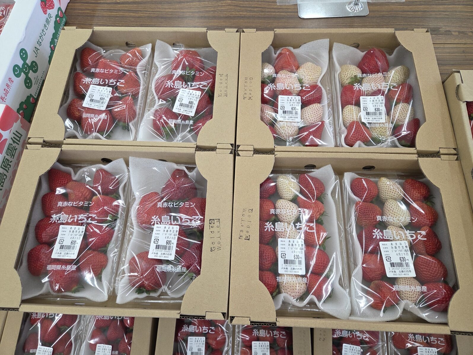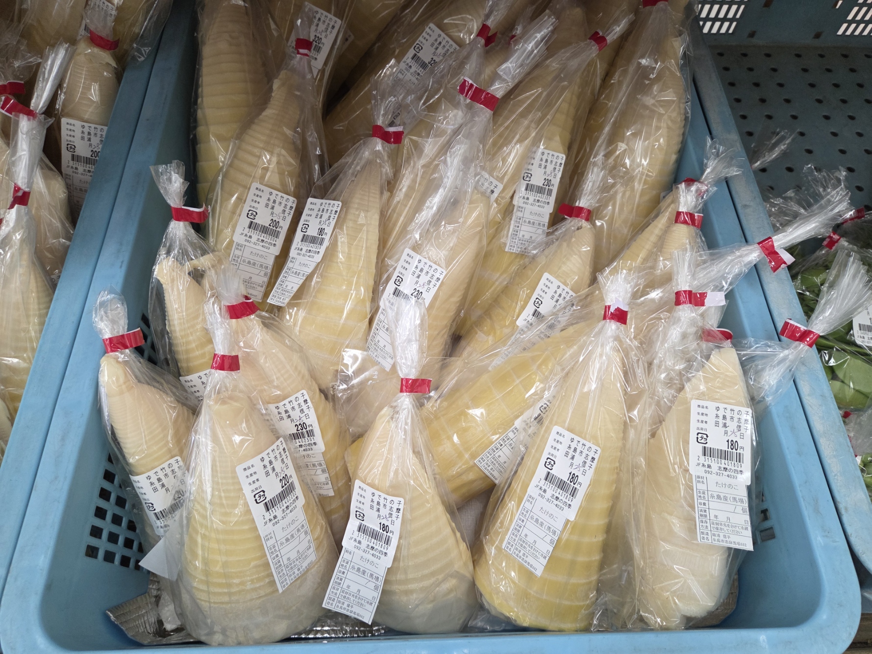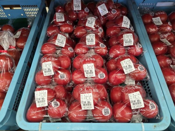 茹でたけのこ、キャベツ、きゅうり、ニンニクの芽、小松菜、スナップエンドウ、トマト、赤玉ねぎ、みかん(清見など)、いちご(あまおう等)等